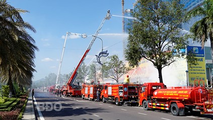 Buổi diễn tập diễn ra với quy mô lớn, huy động nhiều lực lượng, phương tiện, thiết bị cùng tham gia nhằm nâng cao ý thức, trách nhiệm về công tác PCCC&CNCH khi xảy ra các tình huống cháy, nổ, tai nạn, sự cố đối với mô hình dịch vụ siêu thị, TTTM.