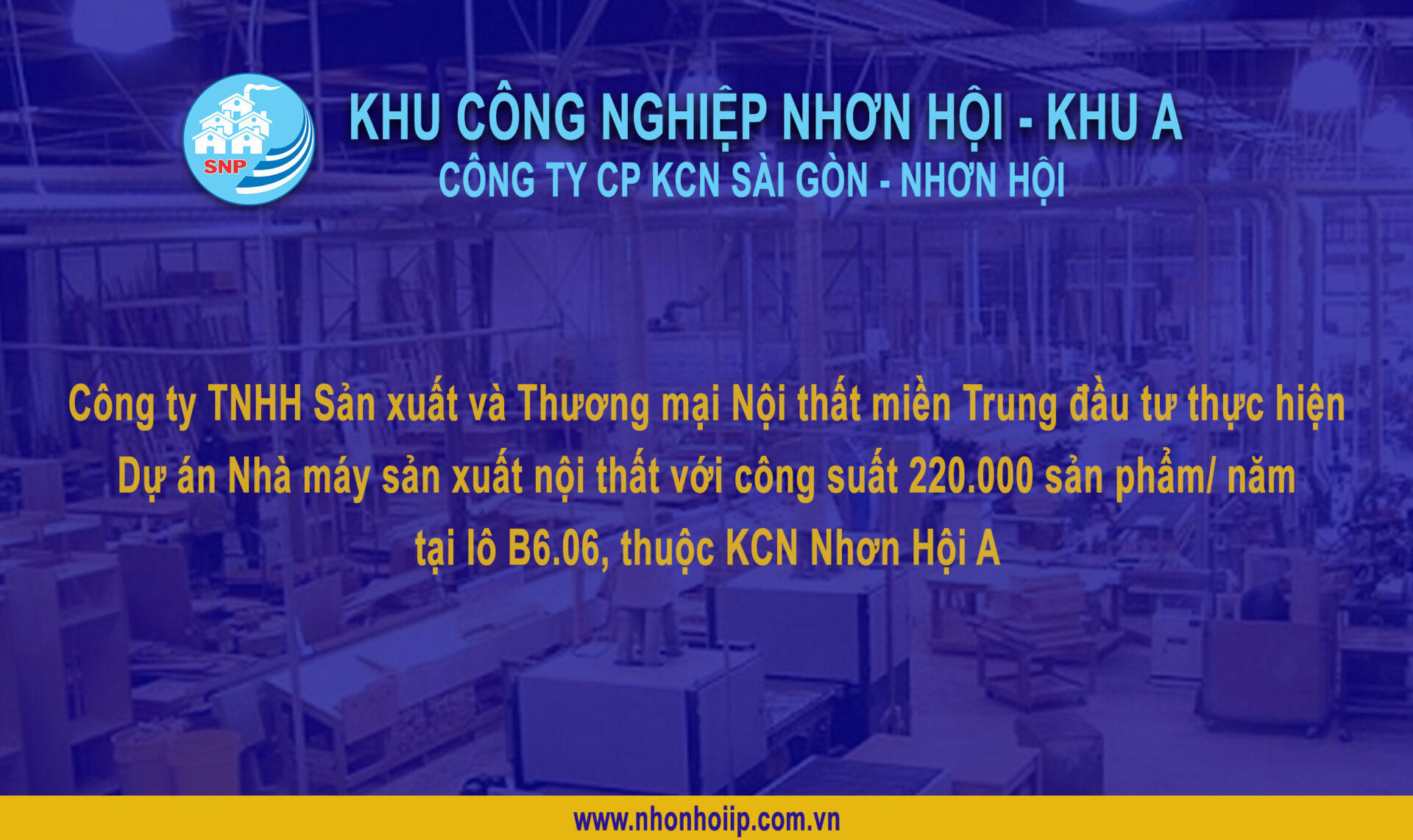 Chủ đầu tư KCN Nhơn Hội A – Công ty CP KCN Sài Gòn – Nhơn Hội (SNP) luôn hỗ trợ, đồng hành cùng Công ty TNHH Sản xuất và Thương mại Nội thất Miền Trung, tạo mọi điều kiện thuận lợi nhất để dự án sớm đi vào hoạt động sản xuất kinh doanh và đạt được hiệu quả cao.