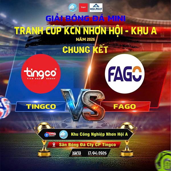 After an intense and emotional journey, the Mini Football Tournament Nhon Hoi Industrial Zone – Area A Cup 2026 has officially reached its FINAL match! ⚽🏆