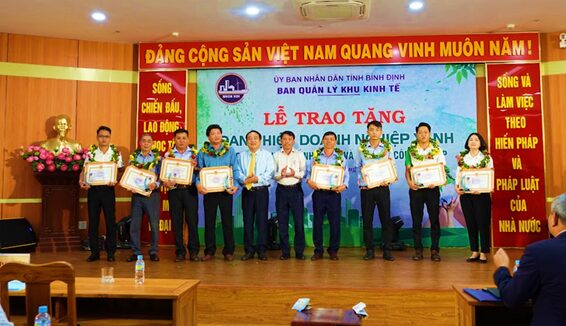 To celebrate World Environment Day on June 5th, 2024 with the theme “Restoring land, combating drought and desertification”; and to enhance the quality of the environmental protection emulation movement in Nhon Hoi Economic Zone and industrial parks in the province; and to promptly honor businesses that have excelled in environmental protection during their manufacturing and business operations; on June 5th, 2024, The Management Board of Binh Dinh Economic Zone held the Green Business Award Ceremony in Nhon Hoi Economic Zone and industrial parks across the province.