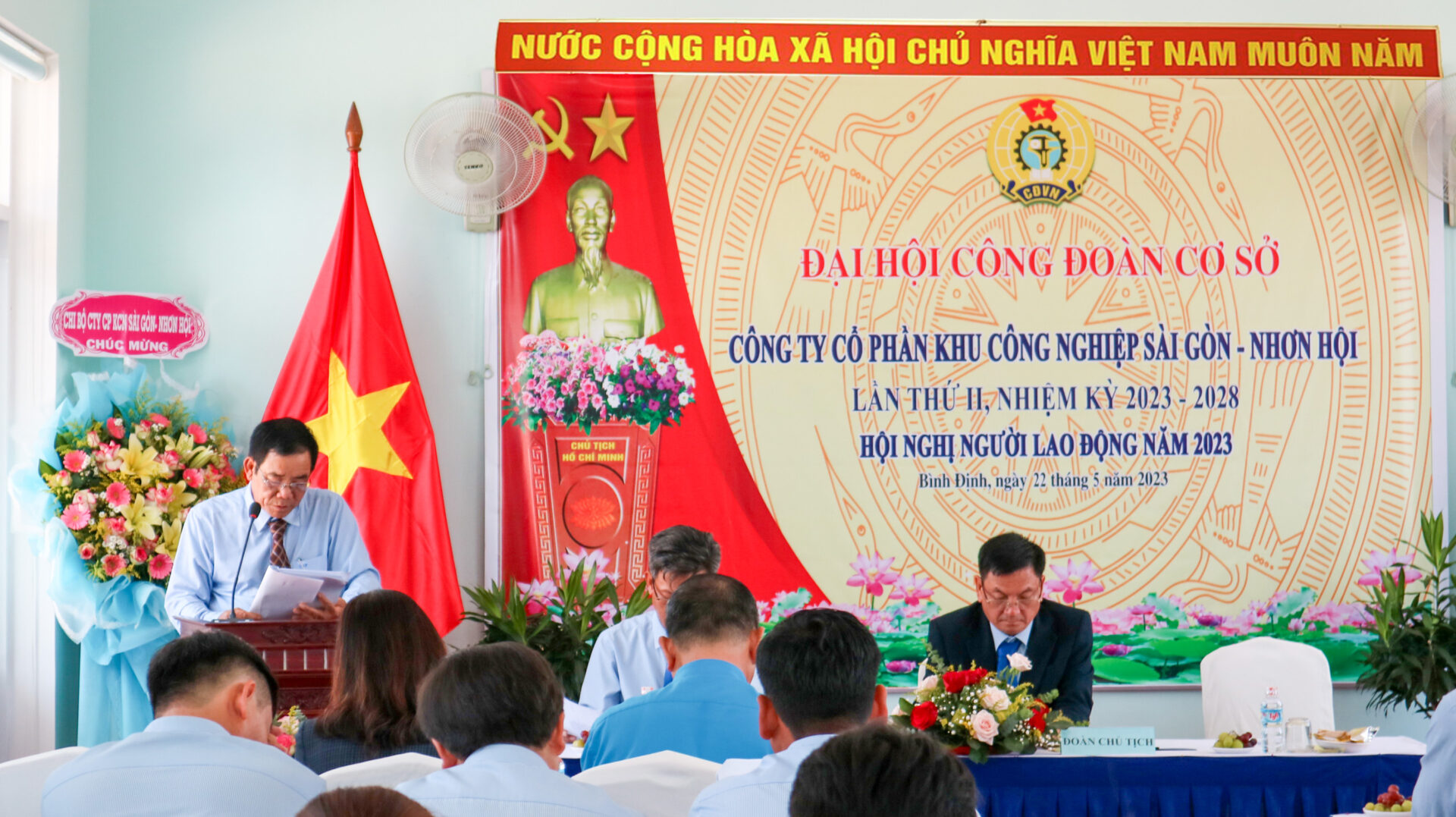 The 2023 Worker’s Conference at Saigon-Nhonhoi Industrial Park Corporation was successfully held with consensus, agreement, and high determination of all participants. This was an opportunity for the company’s leadership to understand the thoughts and aspirations of the workers, as well as for the workers to express and contribute opinions on issues related to their rights, benefits, obligations, and responsibilities. Consequently, it contributes to building a harmonious and stable labor relationship, actively contributing to the business and investment activities of the company’s industrial park, and ensuring the social welfare of the workers in the coming years.