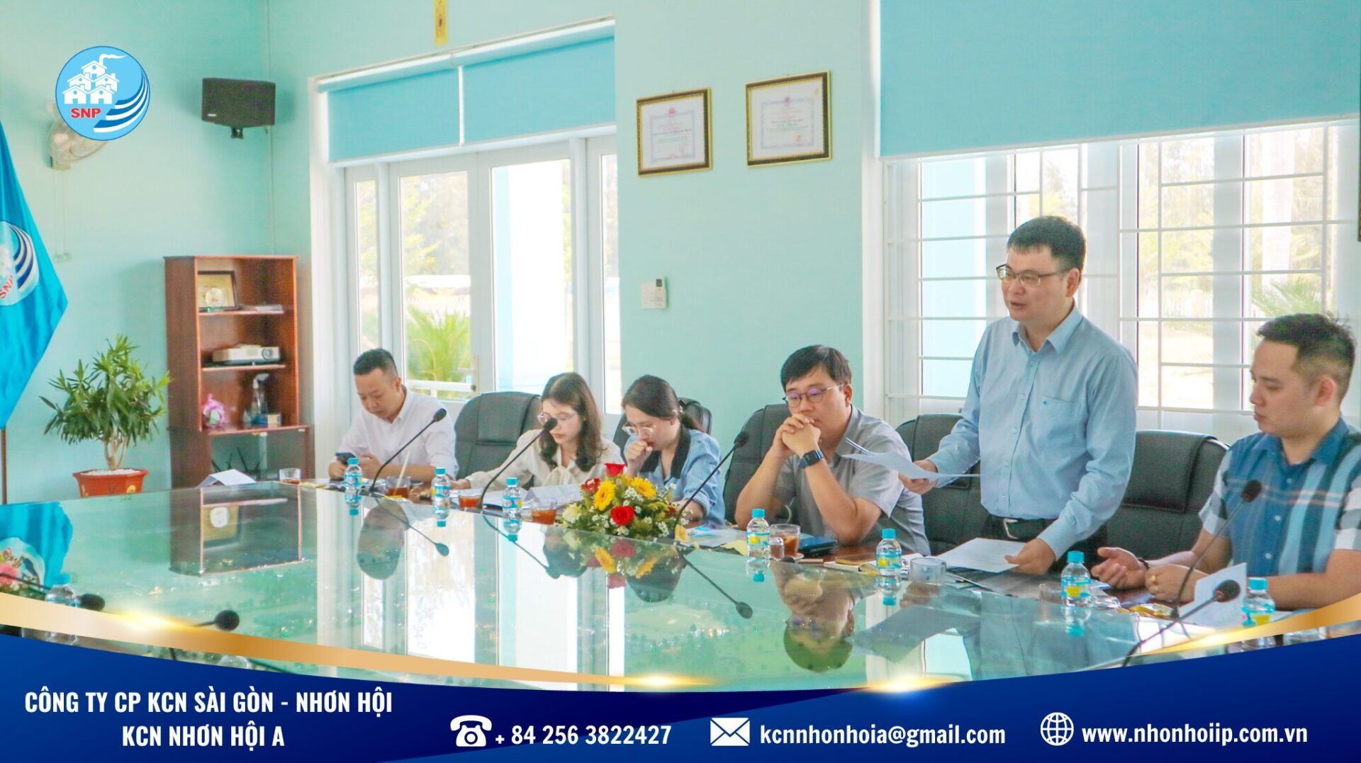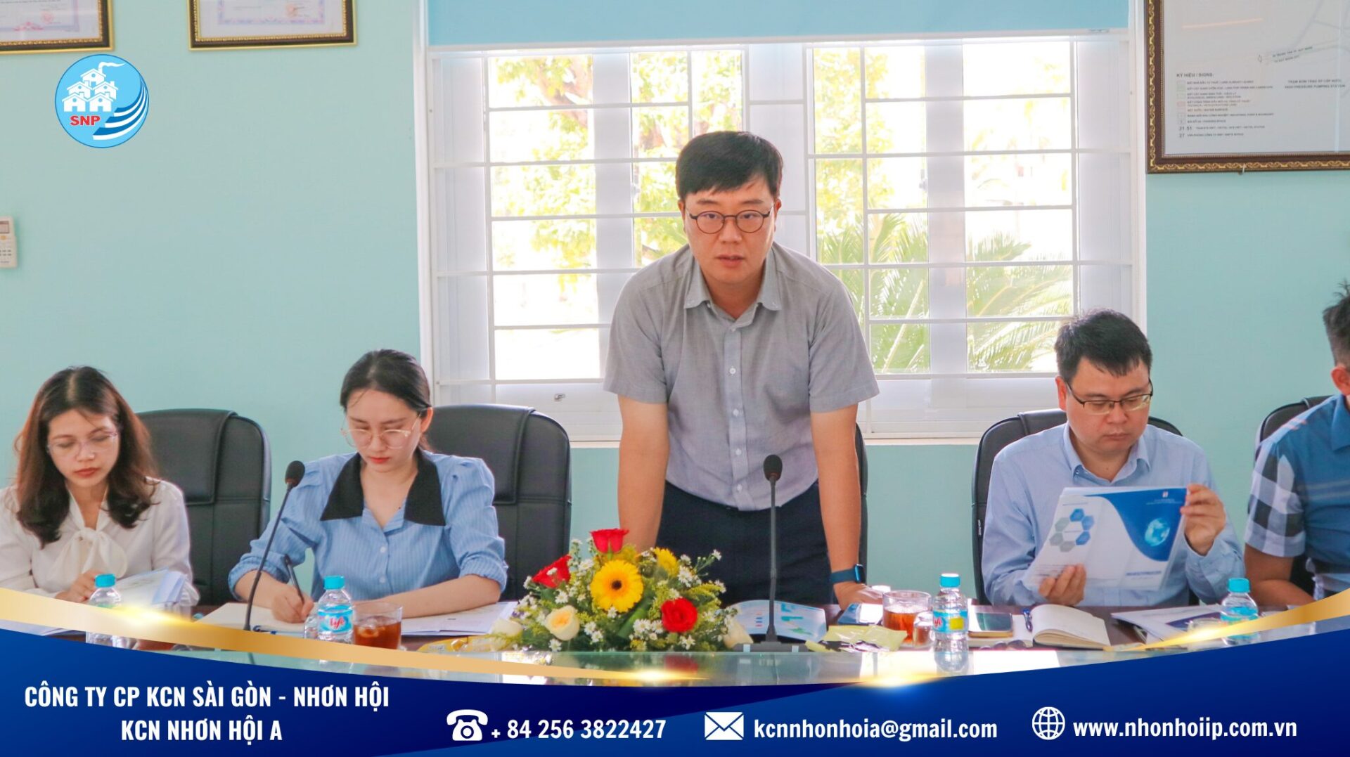 On May 16th, at the office of Saigon - Nhonhoi Industrial Park Corporation (SNP), there was a reception and working session with the Delegation of Vietnam Trade Promotion Agency - Ministry of Industry and Trade. This activity was a part of the actual investment promotion consulting program event in Binh Dinh and the Central provinces organized by the Vietnam Trade Promotion Agency - Ministry of Industry and Trade in colaboration with the Korea Desk.