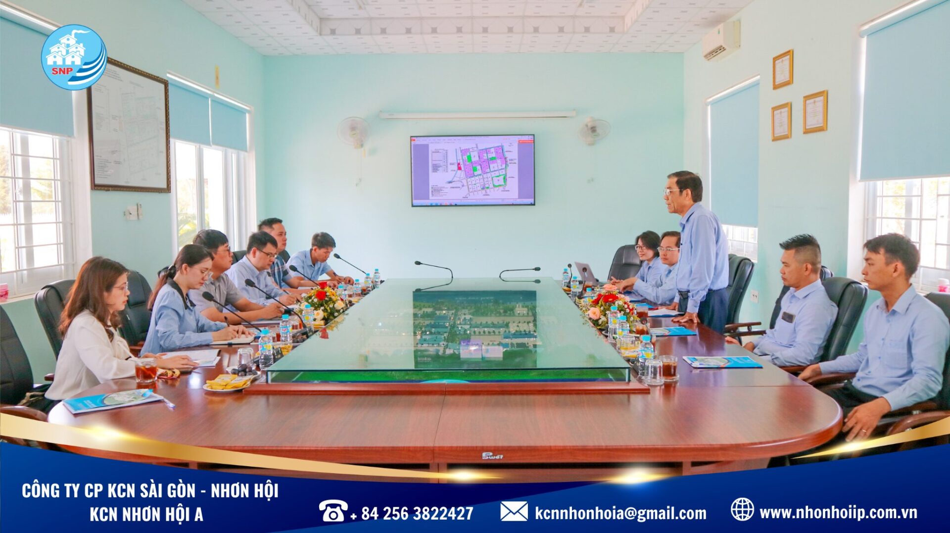 On the occasion of the delegation’s survey and work at Nhon Hoi A IP (A IP), SNP warmedly welcome them and introduced to the IP’s outstanding potentials and advantages, providing information, documents, photos, and videos illustrating the IP’s potential, geographical location and infrastructure.