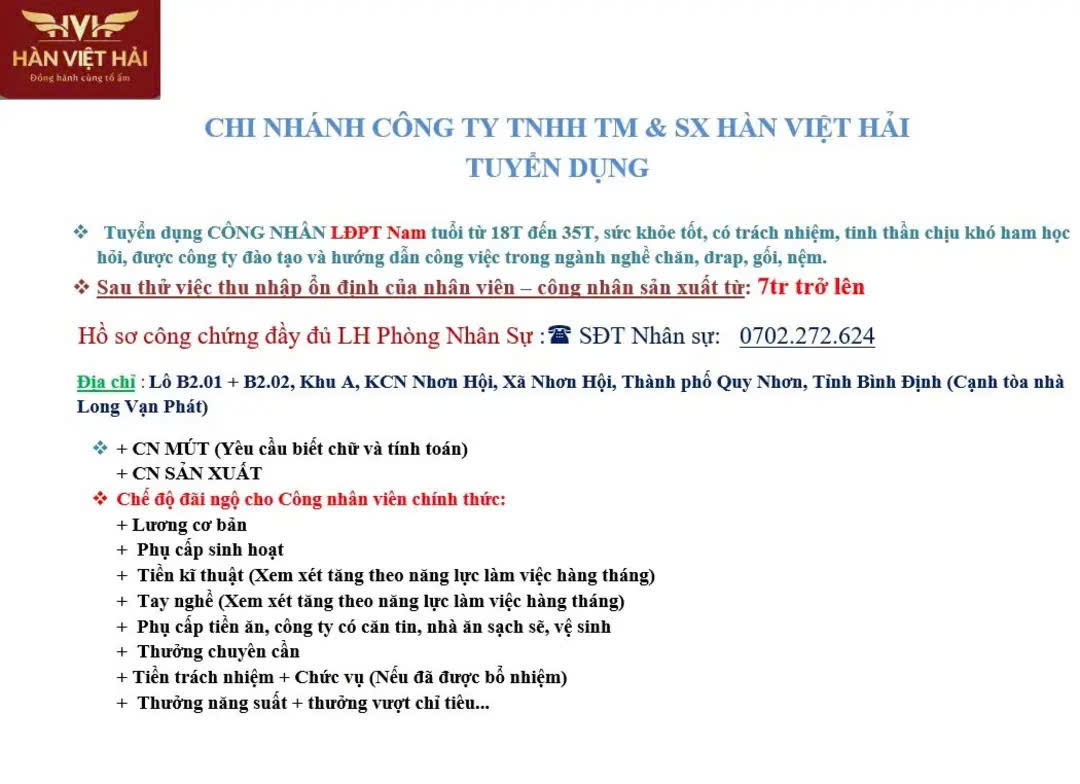 📞 Liên hệ: 0702.272.624 (Phòng Nhân sự)