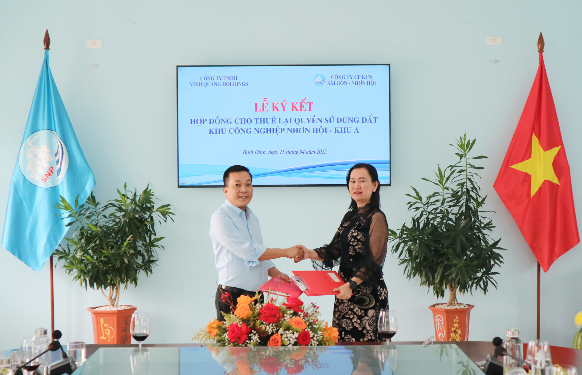 Đầu tư nhà máy sản xuất bông, xơ, sợi và chăn, ga, gối, nệm tại KCN Nhơn Hội A: Lễ ký kết Hợp đồng thuê lại đất với Công ty TNHH Ngọc Như Ý Holdings và Công ty TNHH Vinh Quang Holdings
