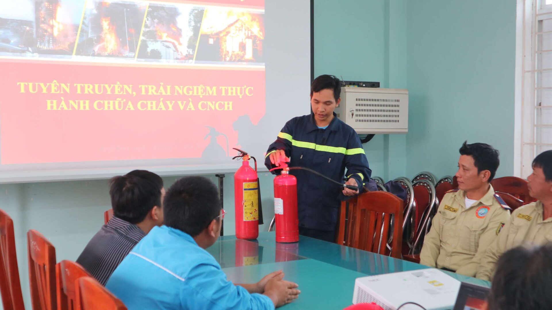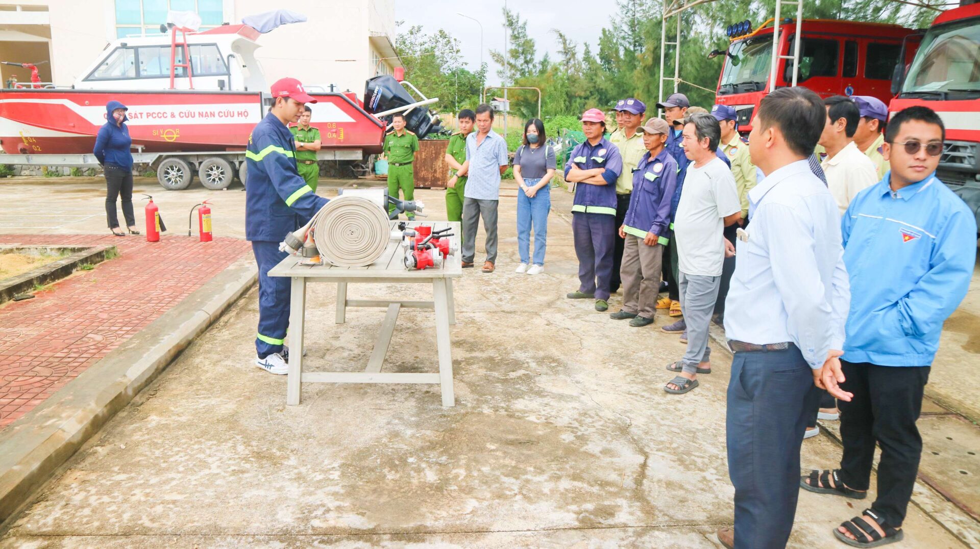 Lớp học thực hành của Đội PCCC SNP tại Đội PCCC số 3 KKT Nhơn Hội