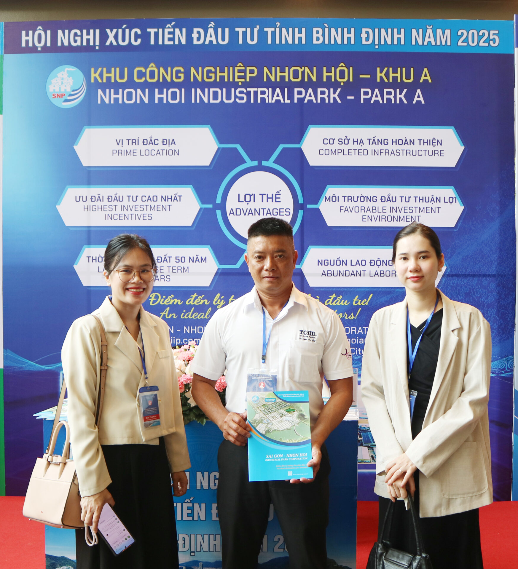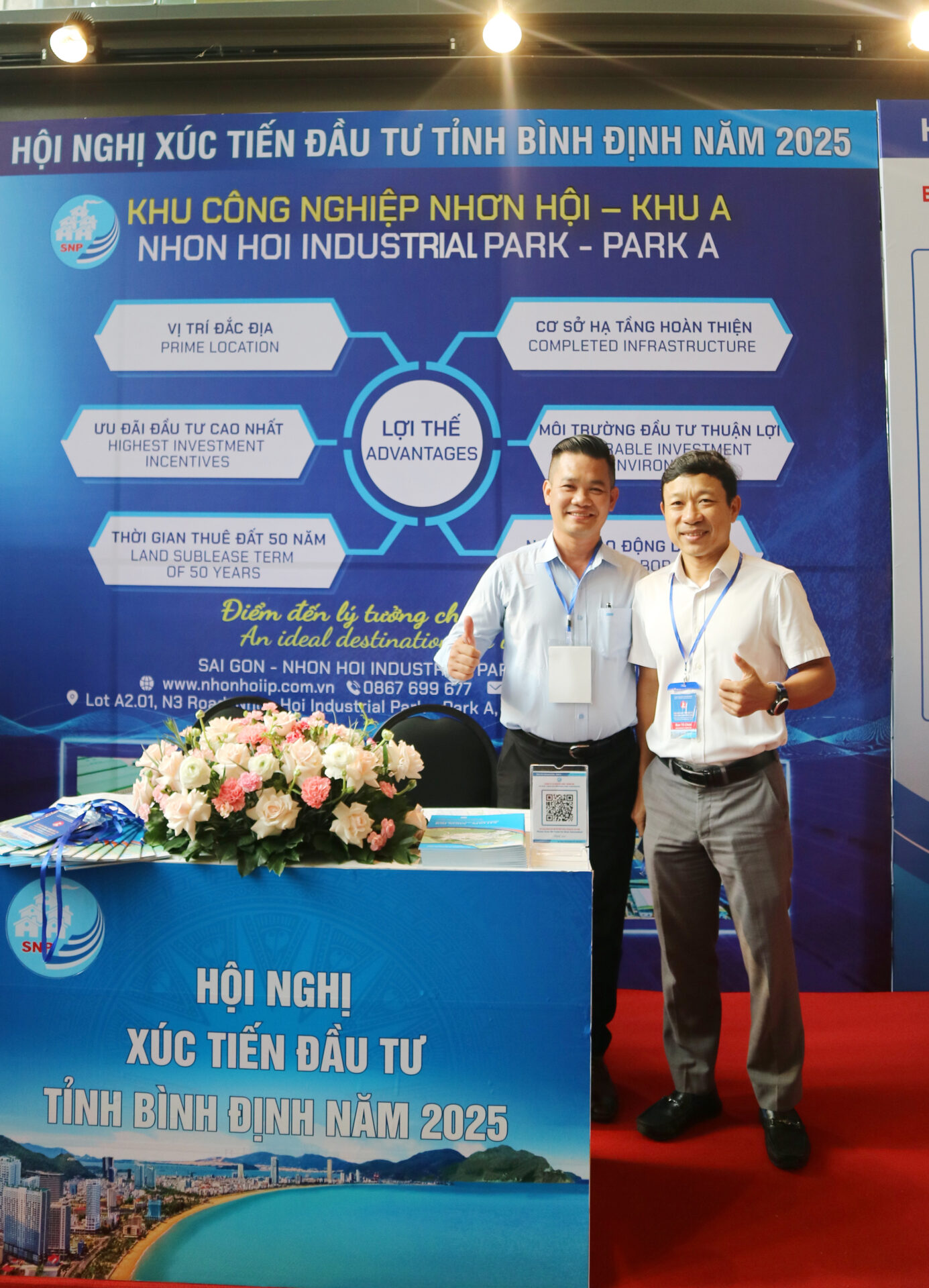Tại khu vực triển lãm, Công ty CP KCN Sài Gòn – Nhơn Hội đã trưng bày quầy thông tin, giới thiệu về cơ sở hạ tầng, các dự án tiềm năng, chính sách ưu đãi và cơ hội hợp tác đầu tư tại KCN Nhơn Hội A. Với vị trí chiến lược, hệ thống hạ tầng đồng bộ, hiện đại cùng chính sách hỗ trợ linh hoạt, KCN Nhơn Hội A tiếp tục khẳng định sức hút đối với các nhà đầu tư, đặc biệt trong lĩnh vực sản xuất chế biến, chế tạo công nghệ cao và ngành nghề thân thiện với môi trường.