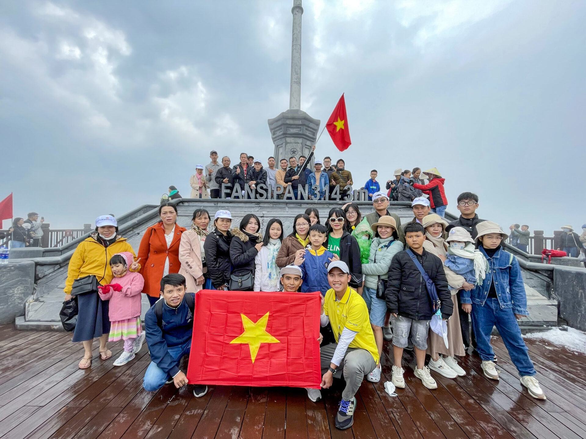 Từ Đền Hùng, đoàn tiếp tục hành trình ngược lên Tây Bắc để đến “Sapa chiều nghiêng huyền thoại”, chinh phục đỉnh cao Fansipan. Cảm xúc thực sự vỡ òa khi cả đoàn chạm tay vào cột mốc ghi dấu nóc nhà Đông Dương. Tại độ cao 3.143m, đoàn đã ngắm trọn vẹn vẻ đẹp non sông Tổ quốc từ đỉnh Fansipan, cảm nhận sự hùng vĩ của đất trời mênh mang và niềm tự hào khi giương cao lá cờ dân tộc Việt Nam.