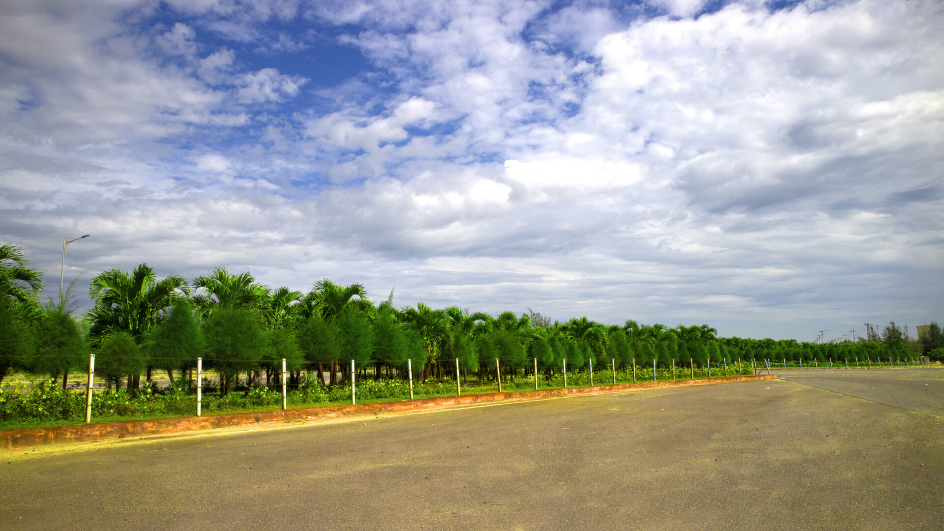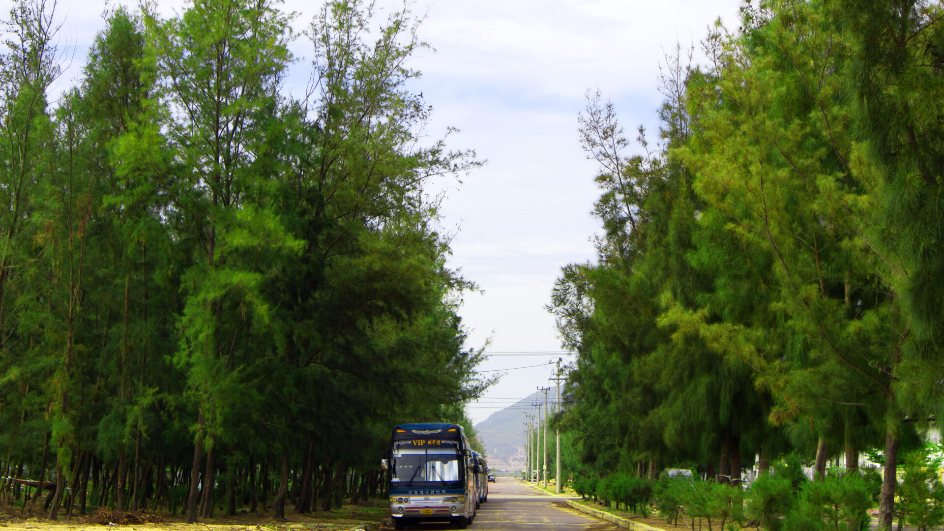 Quang cảnh cây xanh nằm giữa 2 bên tuyến đường tại KCN Nhơn Hội A