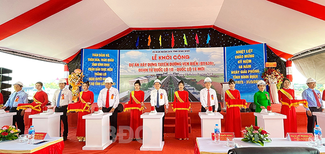 Nhân kỷ niệm 48 năm ngày giải phóng tỉnh Bình Định (31.3.1975 – 31.3.2023), sáng 31.3, tại TP Quy Nhơn, UBND tỉnh tổ chức lễ khởi công dự án Xây dựng tuyến đường ven biển (ĐT 639), đoạn từ QL 1D – QL 19 mới.