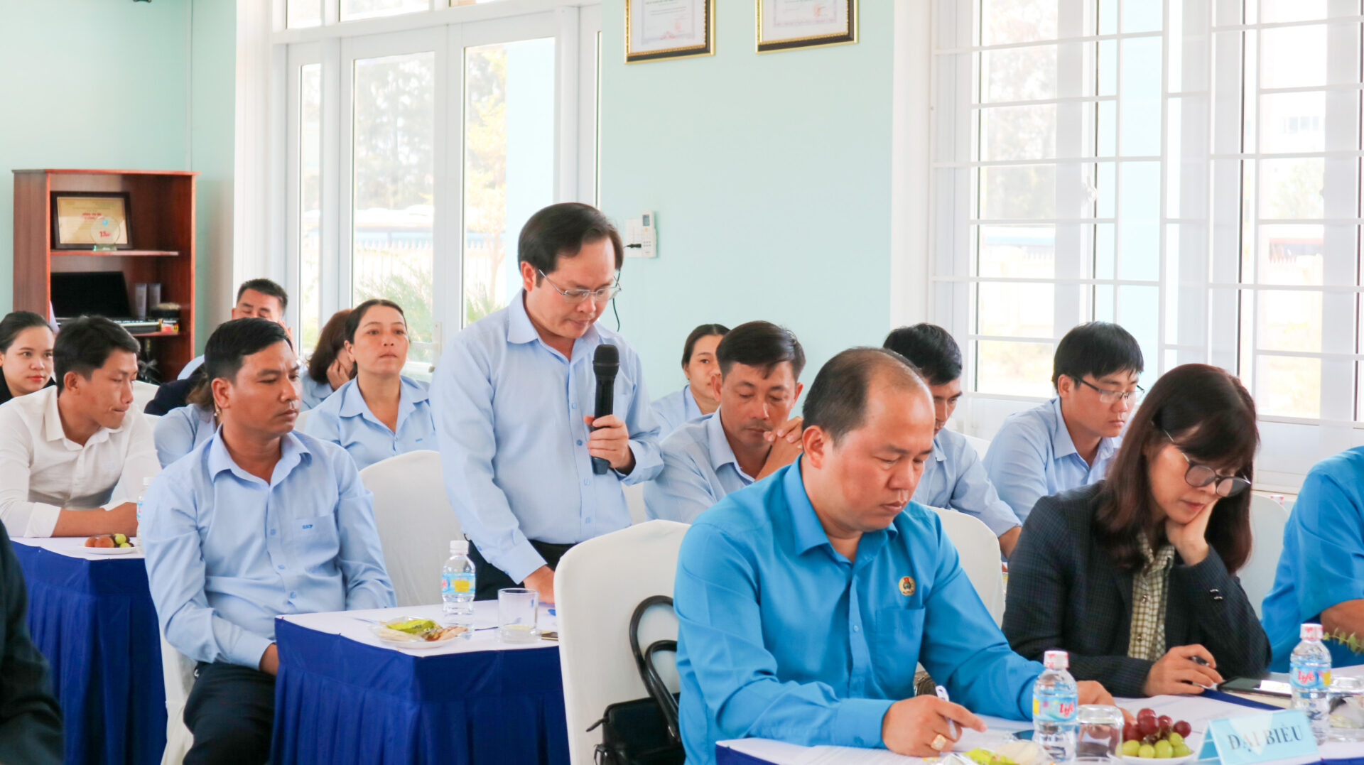 Ông Trương Văn Tín, Chủ tịch CĐCS khóa II, báo cáo tình hình thực hiện hợp đồng lao động (HĐLĐ), thoả ước lao động tập thể, nội quy lao động, quy chế dân chủ đối thoại tại Công ty. Theo đó, Công ty thực hiện nghiêm túc việc ký kết HĐLĐ với toàn bộ NLĐ tại Công ty, thực hiện đầy đủ các chế độ chính sách, lương, thưởng, phúc lợi; đảm bảo thu nhập cho NLĐ yên tâm công tác, ổn định đời sống.