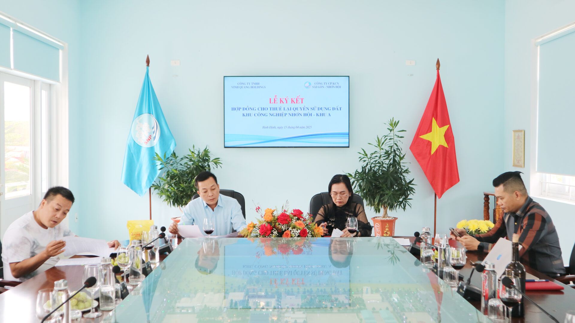 Đầu tư nhà máy sản xuất bông, xơ, sợi và chăn, ga, gối, nệm tại KCN Nhơn Hội A: Lễ ký kết Hợp đồng thuê lại đất với Công ty TNHH Ngọc Như Ý Holdings và Công ty TNHH Vinh Quang Holdings