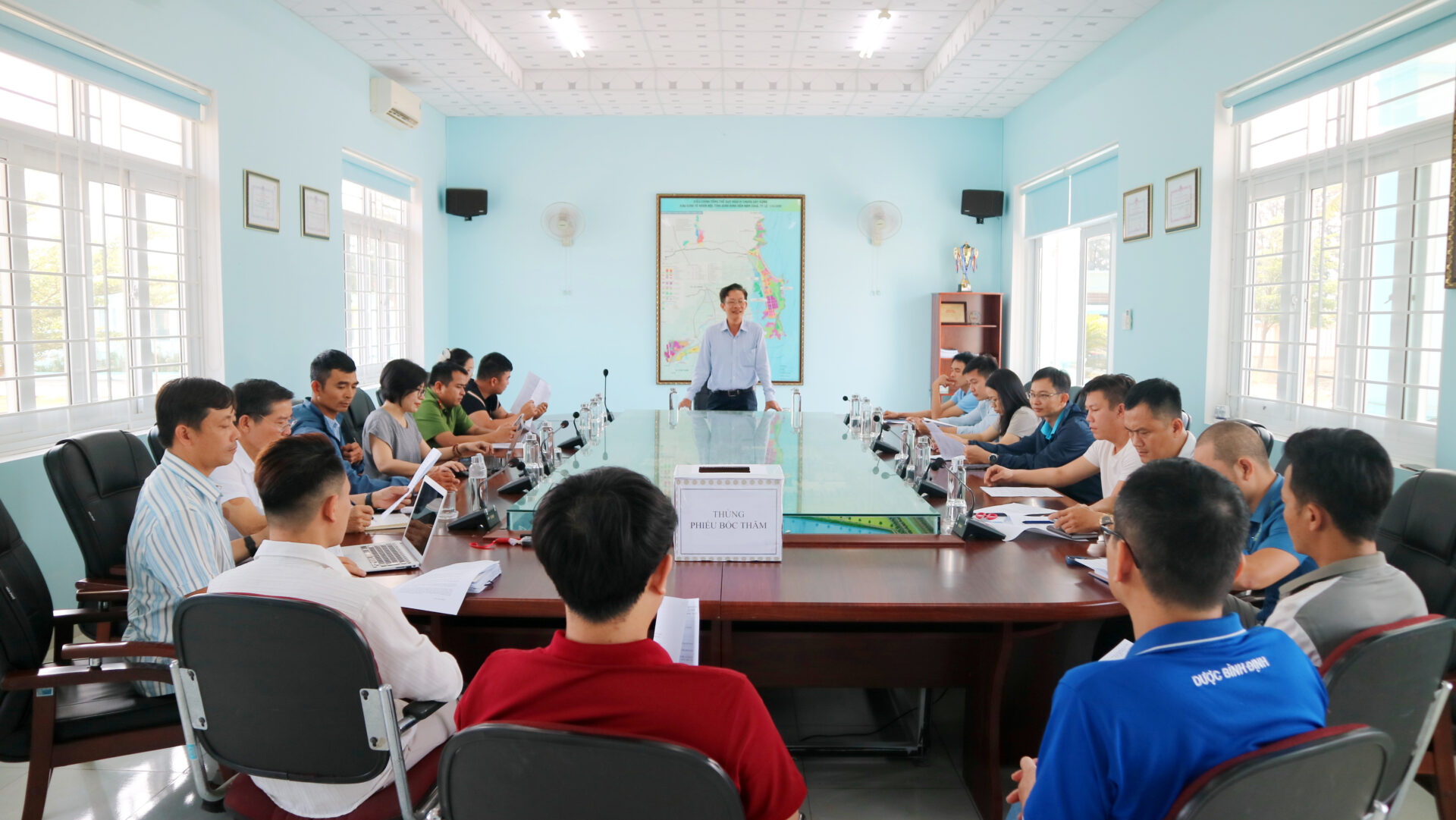 Buổi họp có sự tham dự của Tổ trọng tài, Ban tổ chức cùng đại diện của 12 đội bóng đến từ các doanh nghiệp trong KCN.