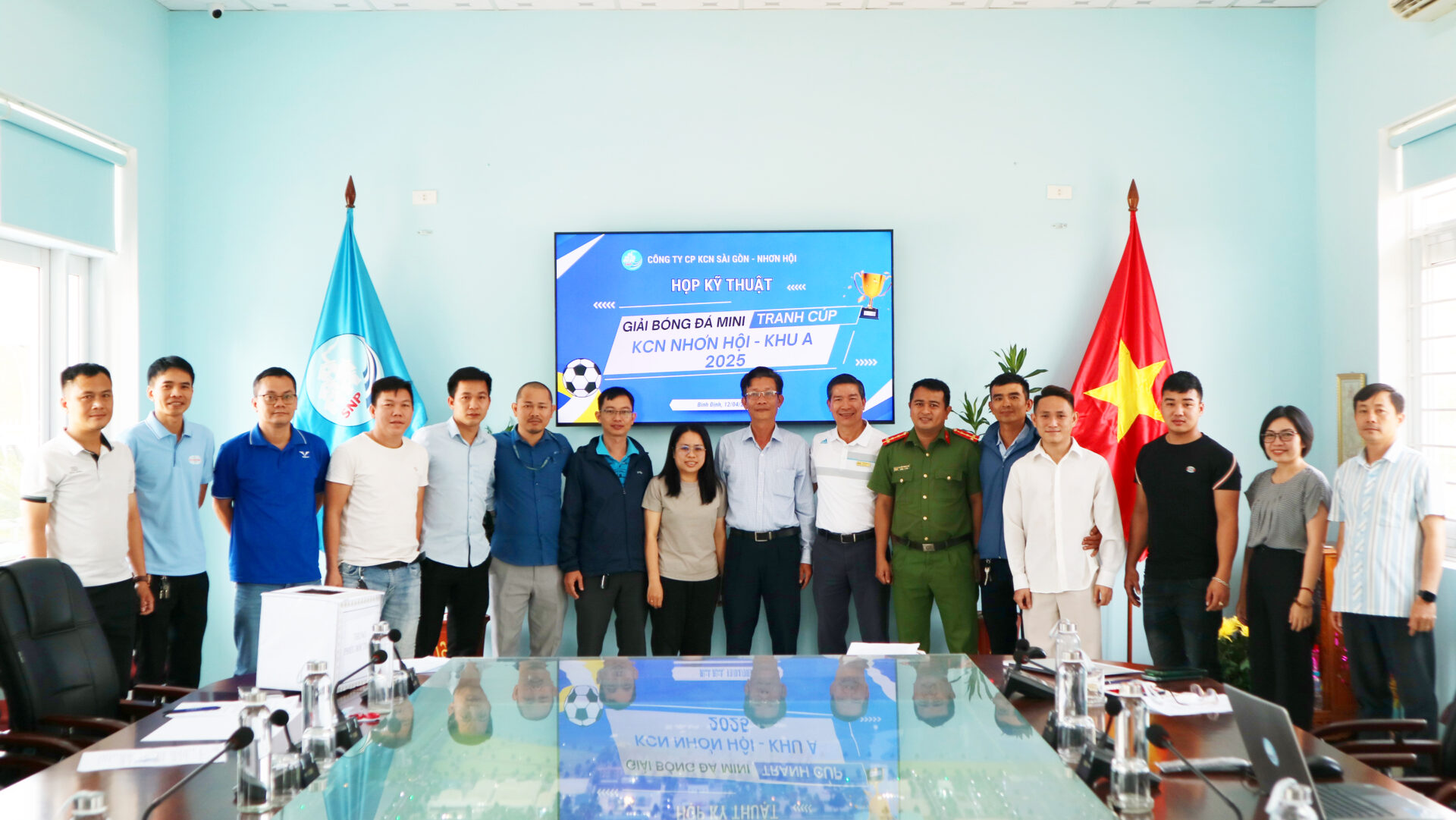 Sáng 12/4/2025, Công ty CP KCN Sài Gòn – Nhơn Hội (SNP) đã tổ chức buổi họp kỹ thuật chuẩn bị cho Giải bóng đá mini tranh Cúp KCN Nhơn Hội – Khu A năm 2025 – sân chơi thể thao sôi động và gắn kết dành cho các doanh nghiệp trong KCN Nhơn Hội – Khu A.