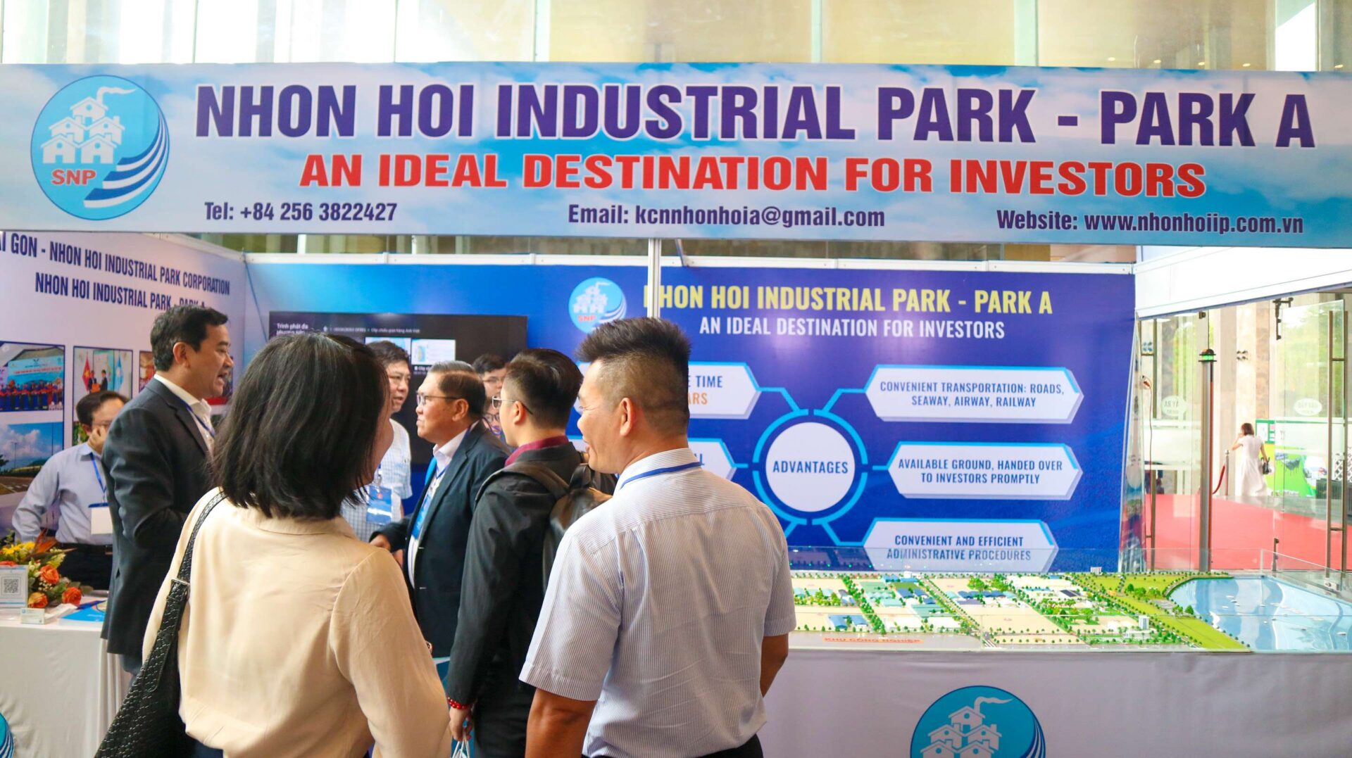 Trong khuôn khổ của sự kiện này, quầy thông tin KCN Nhơn Hội A đã trở thành một trong những điểm nhấn quan trọng tại khu triển lãm của Hội nghị, đóng vai trò là kênh thông tin xúc tiến đầu tư khu công nghiệp, thu hút sự chú ý và quan tâm của đoàn đại biểu, các doanh nghiệp, hiệp hội, tổ chức trong và ngoài nước.