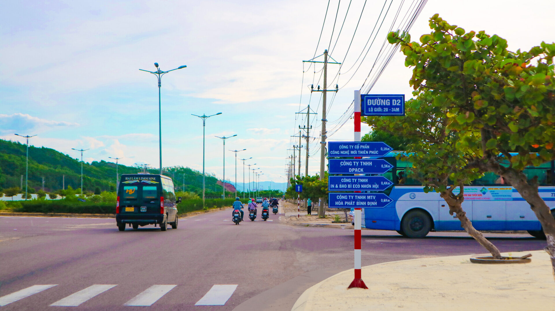 Biển chỉ dẫn tên NĐT tại KCN Nhơn Hội A được đặt tại những vị trí giao thông thuận lợi, ngang với tầm mắt người đi đường tham gia giao thông, đảm bảo nhu cầu xác định vị trí và di chuyển đến công ty, nhà máy cần tìm.