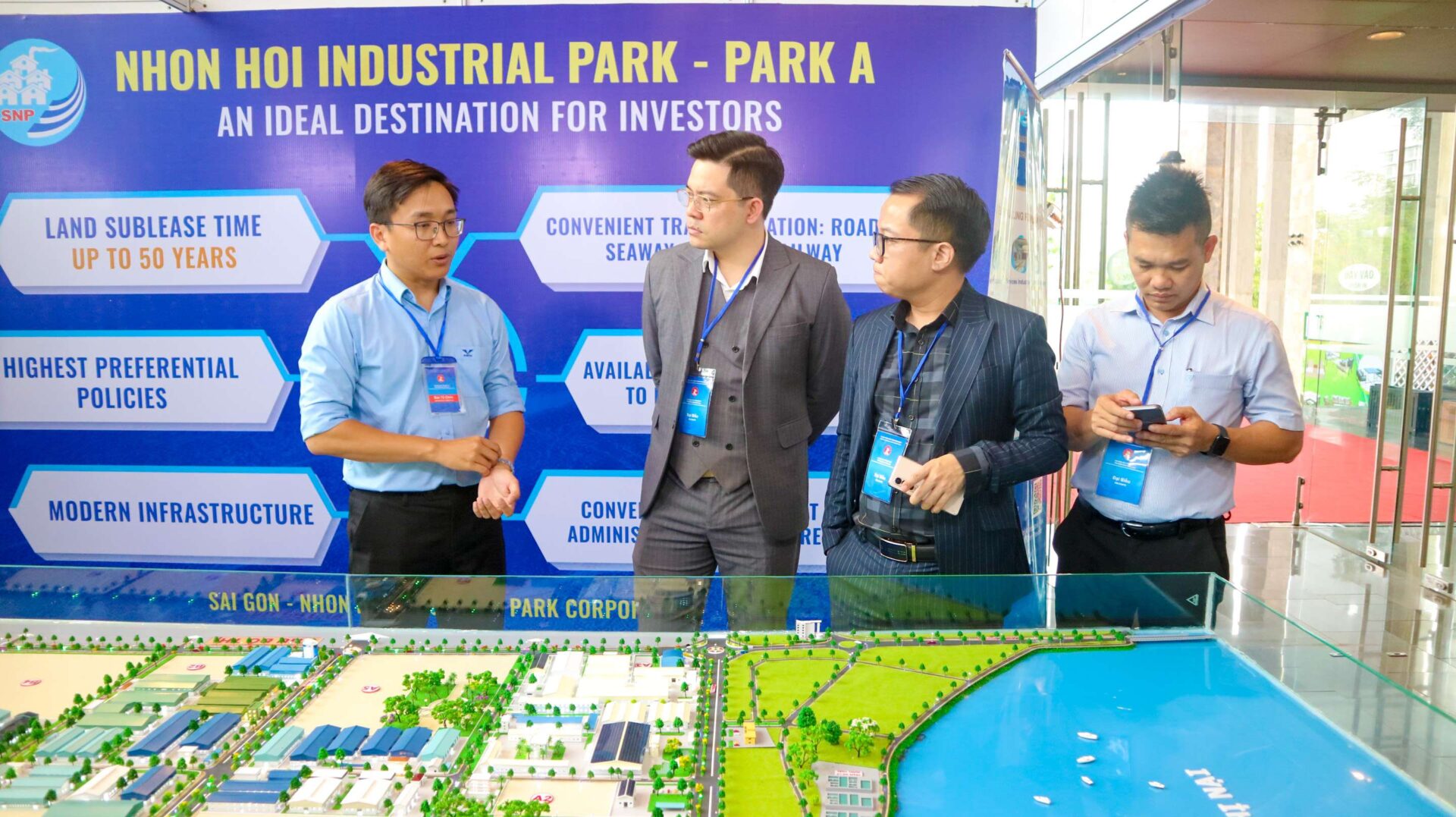 Trong khuôn khổ của sự kiện này, quầy thông tin KCN Nhơn Hội A đã trở thành một trong những điểm nhấn quan trọng tại khu triển lãm của Hội nghị, đóng vai trò là kênh thông tin xúc tiến đầu tư khu công nghiệp, thu hút sự chú ý và quan tâm của đoàn đại biểu, các doanh nghiệp, hiệp hội, tổ chức trong và ngoài nước.