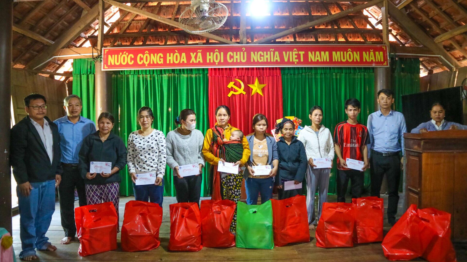 Làng 2, xã Vĩnh Thạnh là làng đặc biệt khó khăn, người dân chủ yếu làm nông, đồng bào dân tộc thiểu số chiếm 93,82%.Với mong muốn hỗ trợ bà con có thêm cái tết ấm no, thay mặt Lãnh đạo BQL KKT, ông Đặng Vĩnh Sơn, Trưởng ban cùng đại diện SNP đã chúc tết, thăm hỏi sức khỏe, tình hình đời sống và trao tặng 83 suất quà, mỗi suất trị giá 500.000 VNĐ đến với bà con. Quà tặng không chỉ là những nhu yếu phẩm thiết thực mà còn là biểu tượng của tình đoàn kết, thể hiện nghĩa cử cao đẹp, tinh thần “tương thân, tương ái” của cơ quan chính quyền và doanh nghiệp.