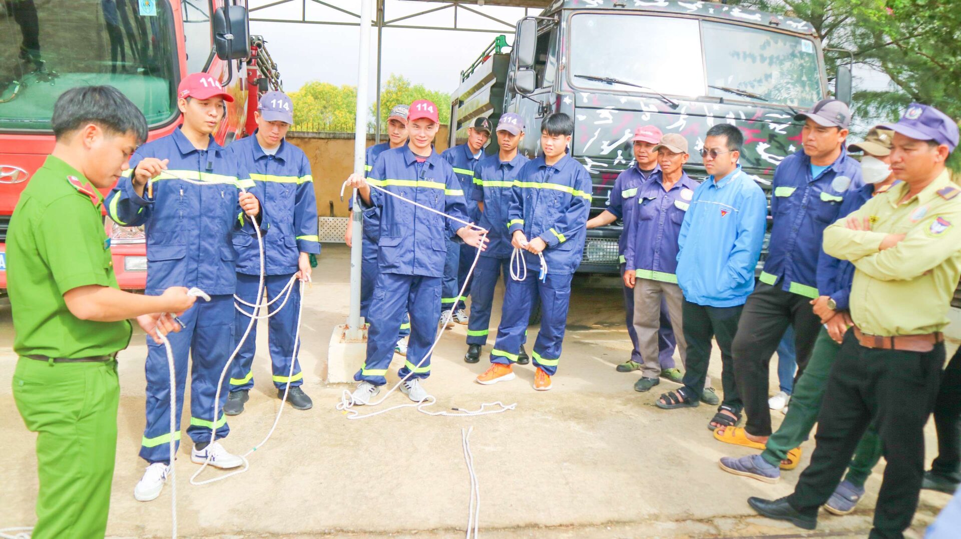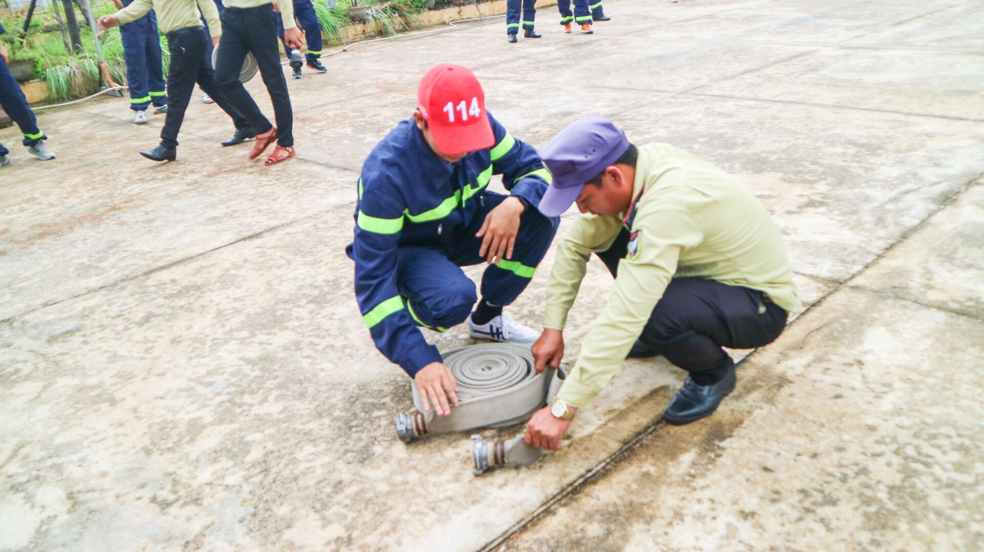 Phần thực hành là nơi Đội PCCC chuyên ngành không chuyên trách của công ty có cơ hội áp dụng các kiến thức đã học vào tình huống thực tế. Họ sẽ được hướng dẫn về cách sử dụng các loại phương tiện chữa cháy chuyên dùng. Bên cạnh đó, họ còn được học về nguyên lý làm việc, cách sử dụng, bảo quản kiểm tra hệ thống cấp nước chữa cháy, hệ thống các trụ nước chữa cháy trong KCN A.