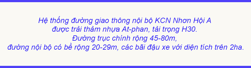 Theo chia sẻ của Ông Trần Thanh Hoàng – Phó TGĐ Công ty CP KCN Sài Gòn – Nhơn Hội (SNP) – Chủ đầu tư KCN Nhơn Hội A trong chuyến khảo sát thực địa KCN. Đến nay hệ thống hạ tầng kỹ thuật KCN đã hoàn thiện theo quy hoạch, mặt bằng được san lấp, cao độ nền ổn định đảm bảo yêu cầu thoát nước, sẵn sàng bàn giao cho NĐT. Hệ thống giao thông đồng bộ, đường trục chính rộng 45-80m, đường nội bộ có bề rộng 20-29m được trải thảm nhựa At-phan, tải trọng H30. Các công trình đầu mối hạ tầng kỹ thuật và vệ sinh môi trường được bố trí hợp lý, đảm bảo đáp ứng tối đa nhu cầu của nhà đầu tư.