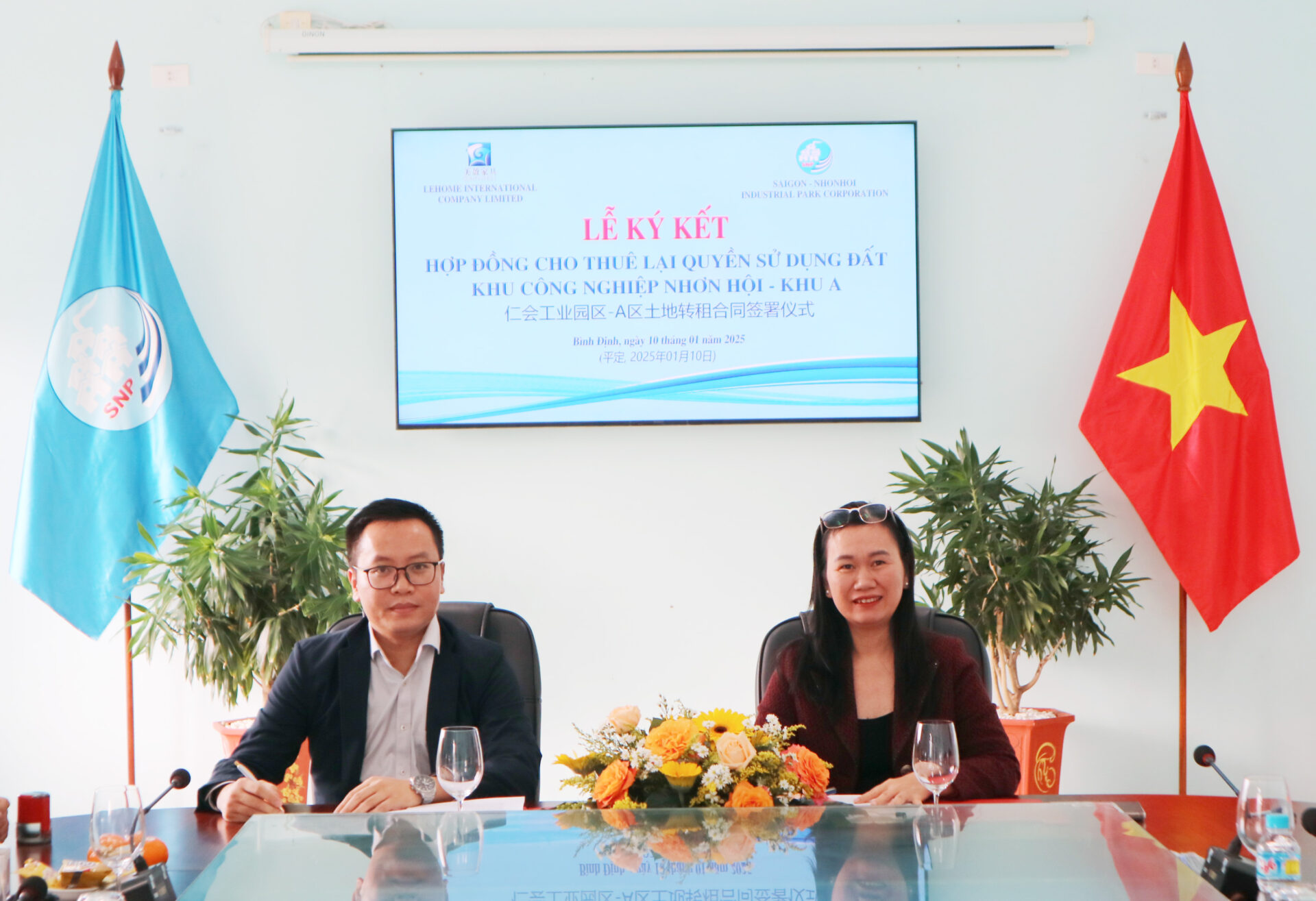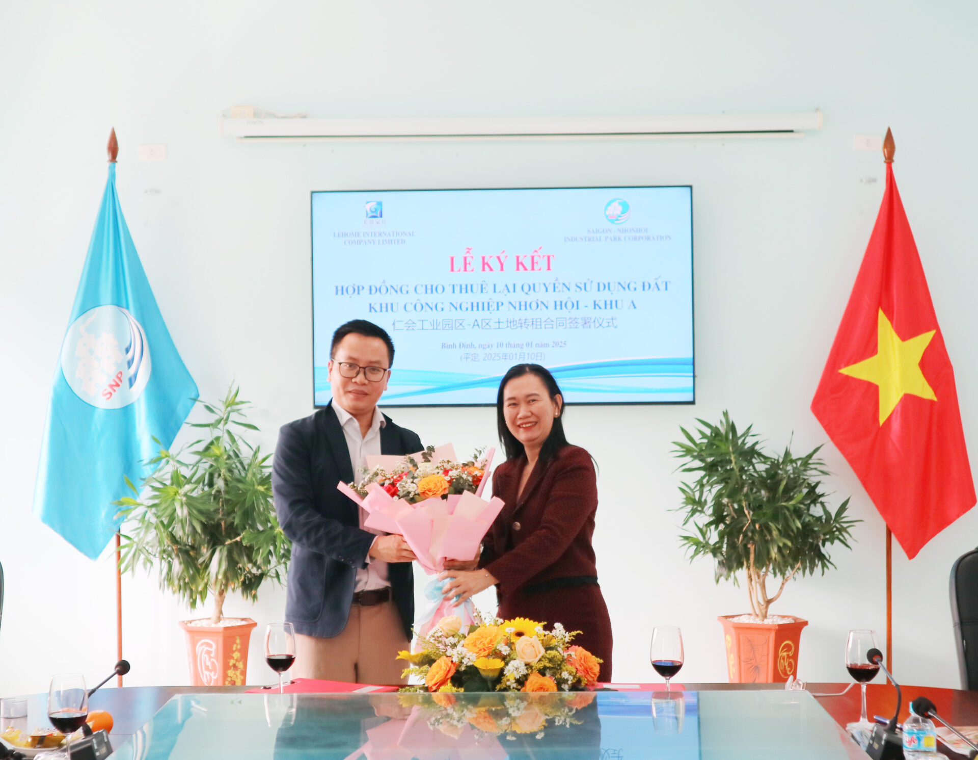 Sáng ngày 10/01/2025, tại trụ sở Công ty CP KCN Sài Gòn – Nhơn Hội (SNP), đã diễn ra lễ ký kết hợp đồng cho thuê lại quyền sử dụng đất giữa SNP – chủ đầu tư KCN Nhơn Hội – Khu A và Công ty TNHH Gỗ Gainwell Việt Nam (Gainwell), thành viên của Tập đoàn Gainwell (Hồng Kông).