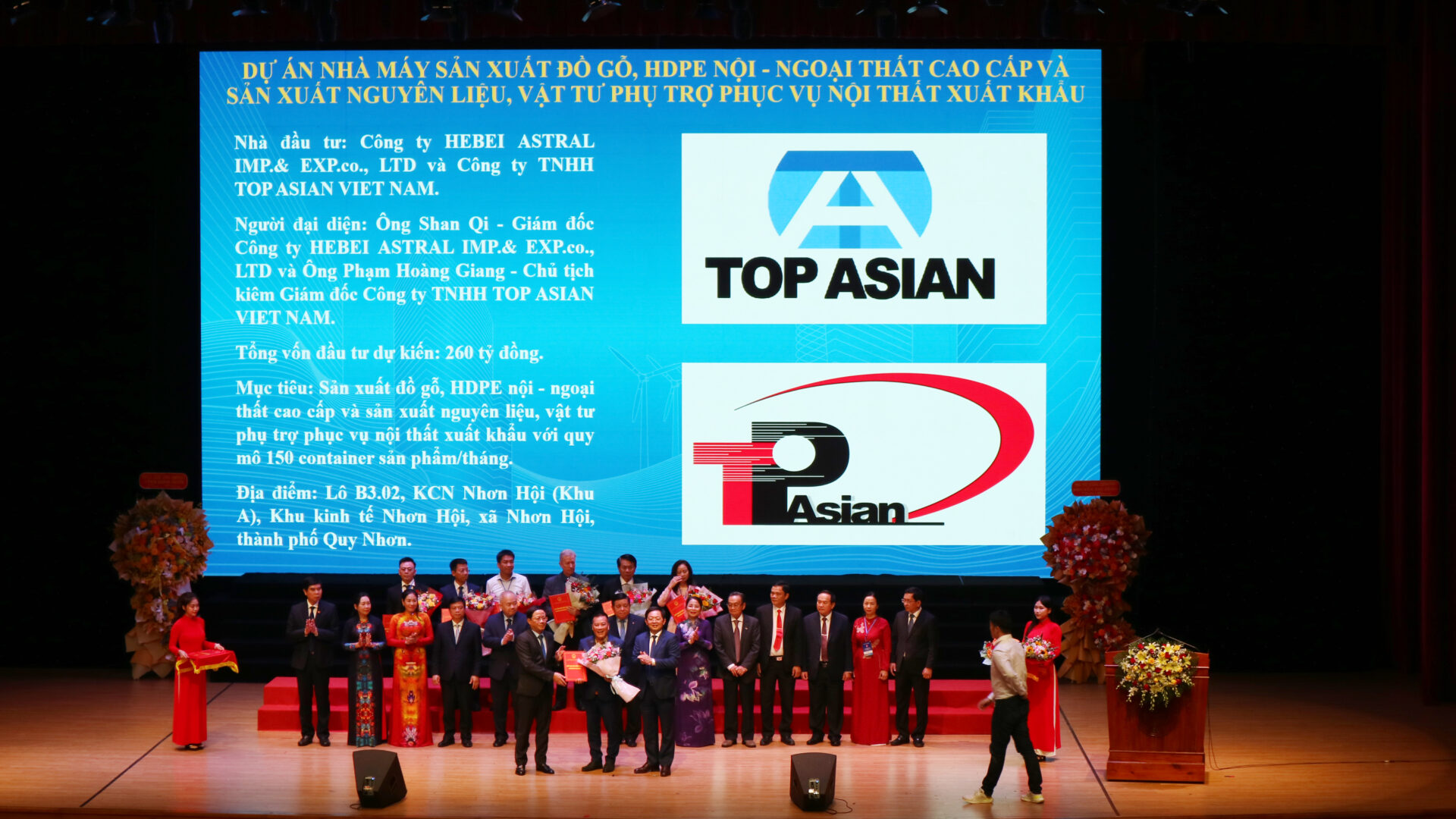 • Công ty TNHH Top Asian Industrial Việt Nam: Dự án Nhà máy sản xuất đồ gỗ, HDPE nội – ngoại thất cao cấp và sản xuất nguyên liệu, vật tư phụ trợ phục vụ nội thất xuất khẩu, vốn đầu tư 260 tỷ đồng.