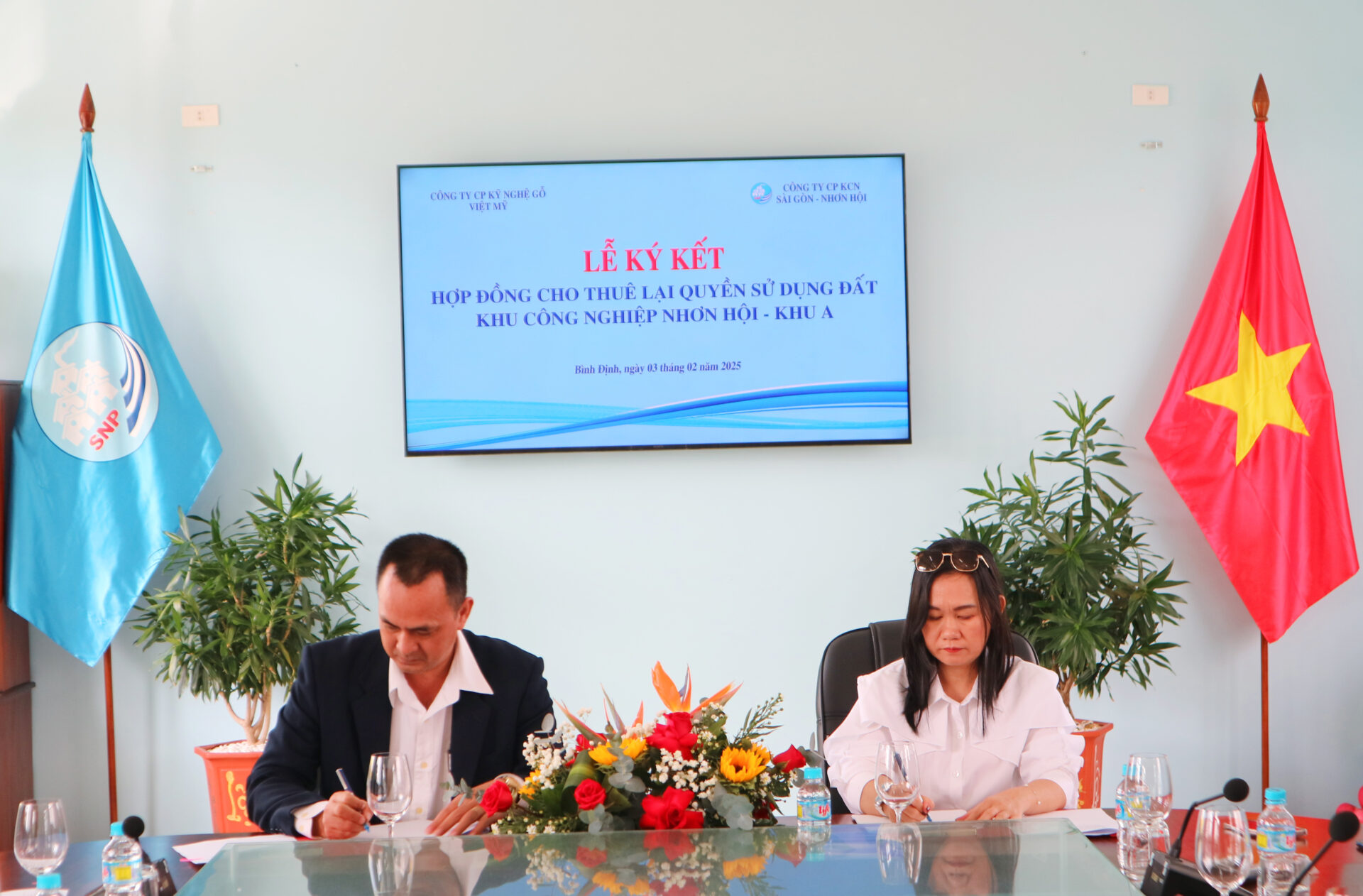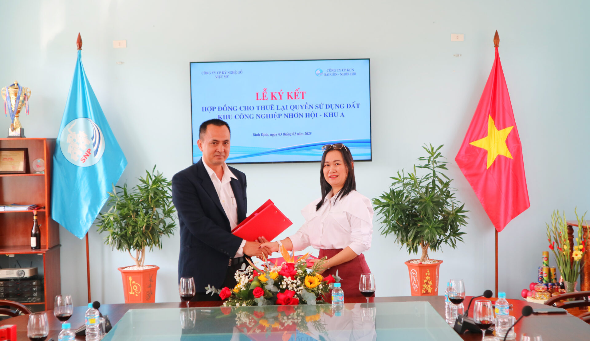 Hòa trong không khí rộn ràng những ngày đầu xuân Ất Tỵ 2025, ngày 3/2/2025 (mùng 6 Tết), Công ty CP KCN Sài Gòn – Nhơn Hội (SNP) đã tiến hành ký kết Hợp đồng thuê lại Quyền sử dụng đất gắn với cơ sở hạ tầng tại KCN Nhơn Hội A với Công ty CP Kỹ Nghệ Gỗ Việt Mỹ (Việt Mỹ).